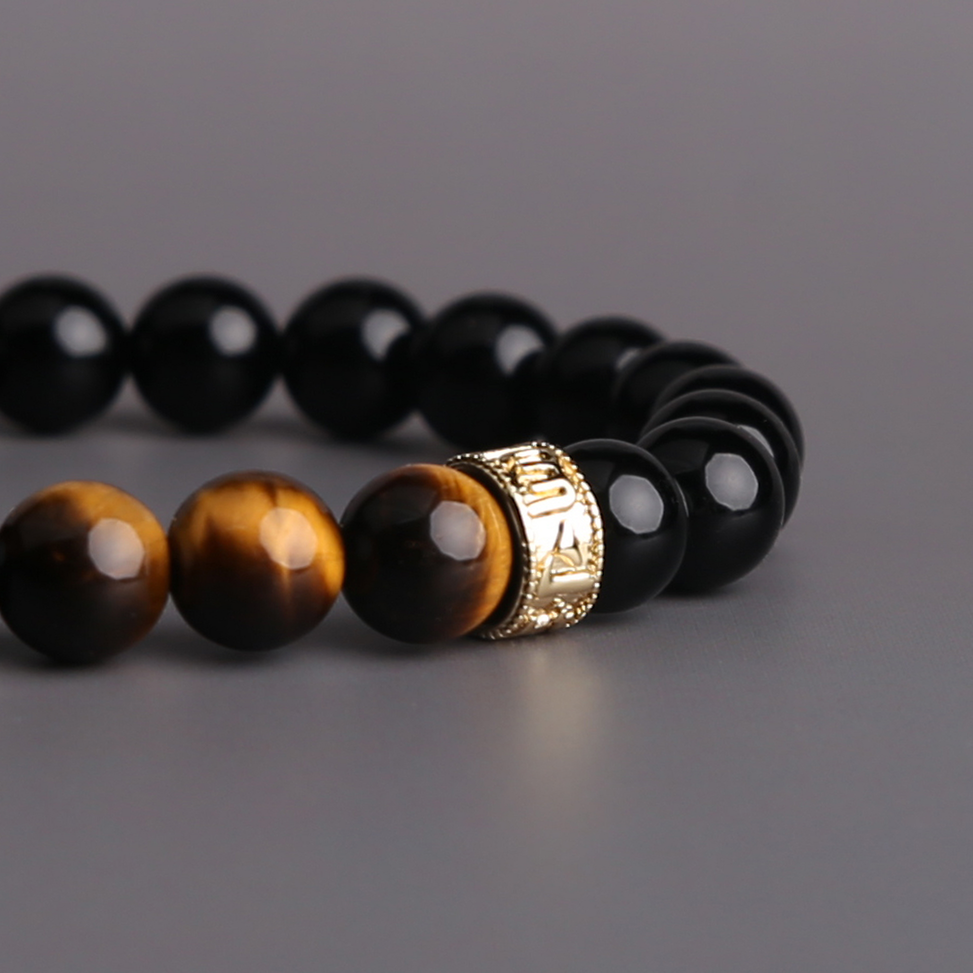 - High-Quality Materials - This men’s crystal bracelet features 8mm premium 5A Grade Natural tiger eye (showcasing a warm golden-brown luster with chatoyancy) and black onyx, paired with Tibetan-style accessories engraved with the Six-Syllable Mantra.
