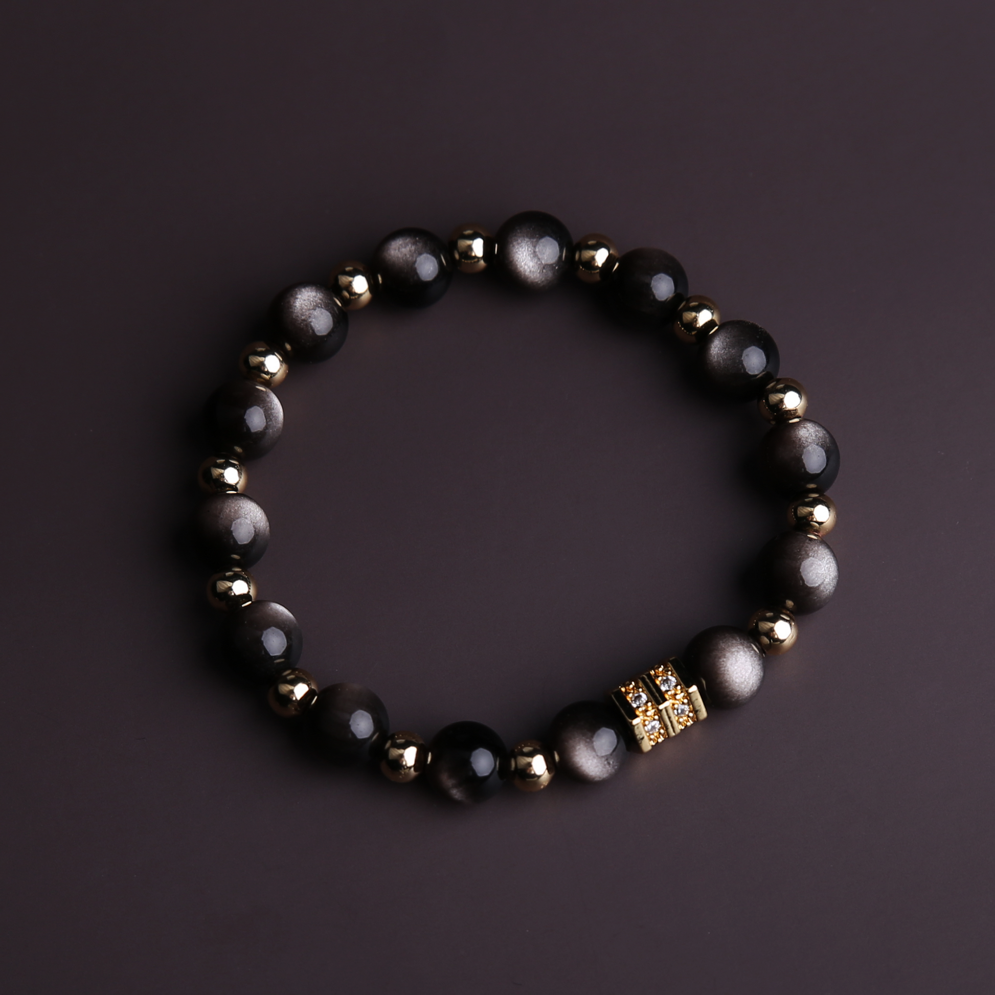 - High-Quality Materials - This men’s crystal bracelet features 8mm premium 5A Grade Natural silver obsidian (boasting a sleek silver-gray sheen) and 5mm 14K gold-plated copper beads, blending natural gemstone texture with luxe metallic accents.